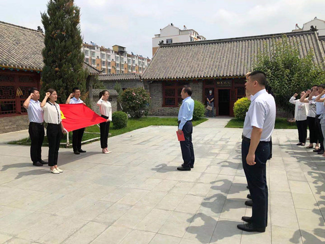 活動中,大家依次參觀各個展區,認真聆聽講解。數以百計的珍貴文物和大量真實照片,生動形象地展示了革命歲月裡共産黨人不畏犧牲、前赴後繼的偉大壯舉,重現了中國共産黨英勇保衛四平的光輝曆史。參觀結束後,局黨委書記、局長崔勇同志帶領全體黨員在指揮部舊址前面對黨旗重溫入黨誓詞。黨員同志們握緊右手,以铿锵有力的宣誓表達對黨的忠誠和堅定不移跟黨走的信念。